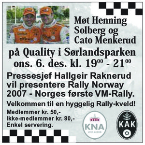 Velkommen til Rally Sørland 2006 som arrangeres av Kristiansands Automobilklub!